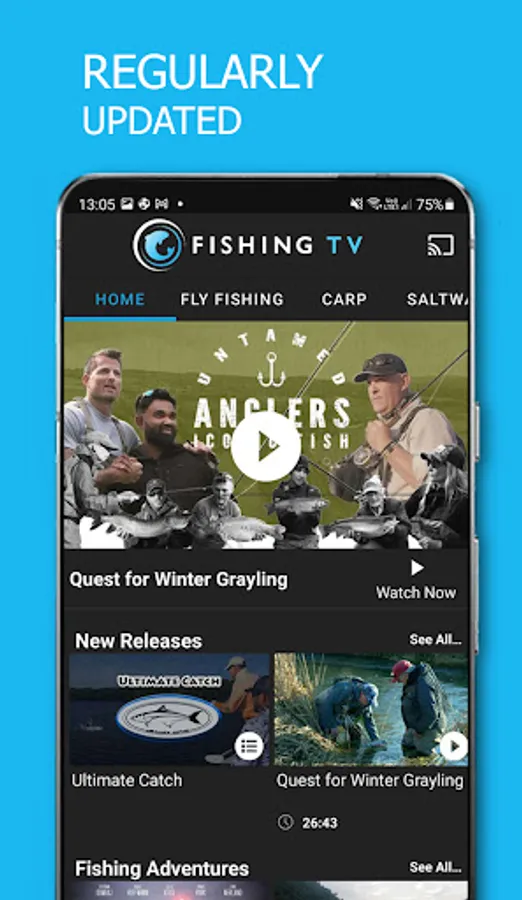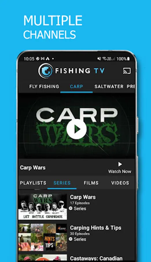 Fishing TV brings you the best fishing action from around the world. Our Video on Demand app contains a huge collection of TV shows, feature length films and short tips covering all aspects of recreational fishing. The Android app is regularly updated with new content and is Chromecast enabled as well as offering offline downloads so you can watch anytime and anywhere.