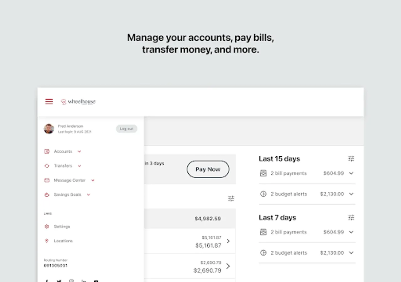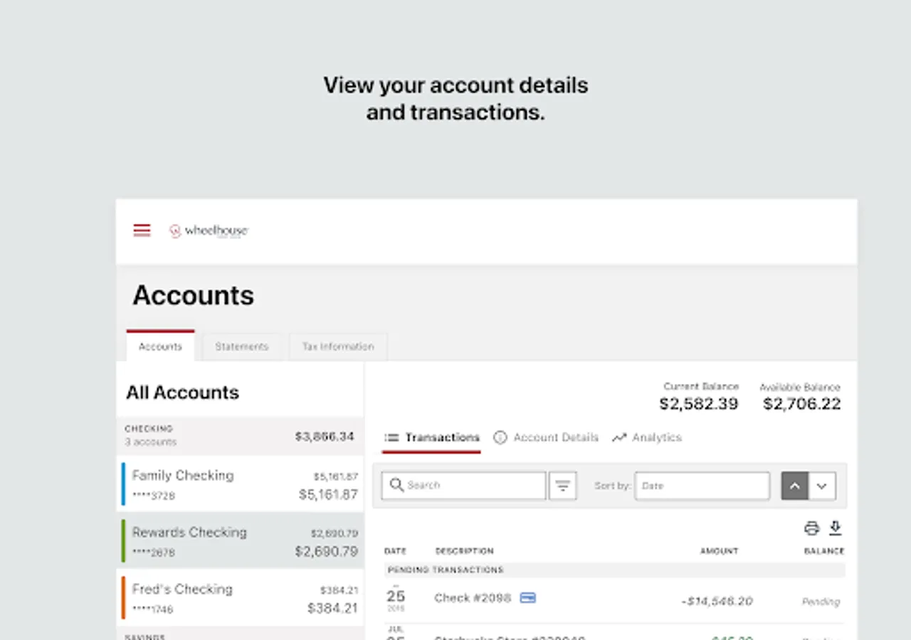 - Transfer funds between Wheelhouse accounts and your accounts elsewhere