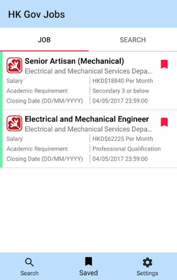 1. Search job vacancies published in Civil Service Bureau website
