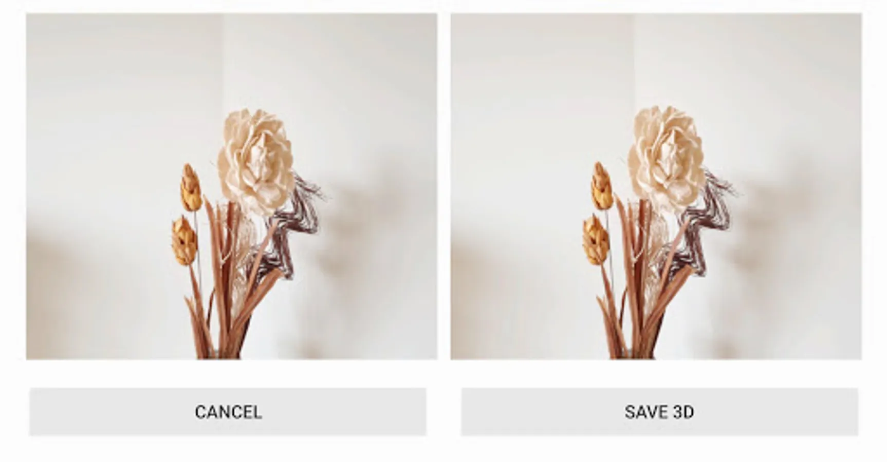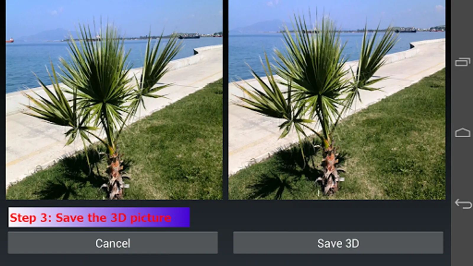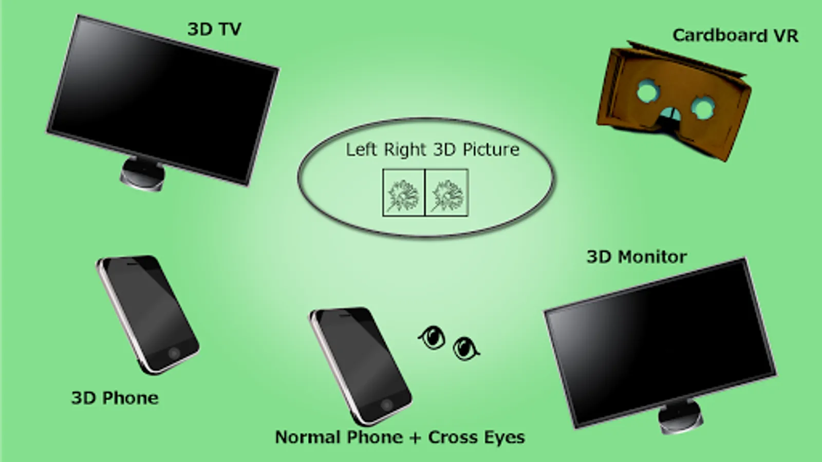 This app makes the Left-Right picture format, which needs to be watched in 3D TV or 3D monitor with 3D glasses or your VR device!