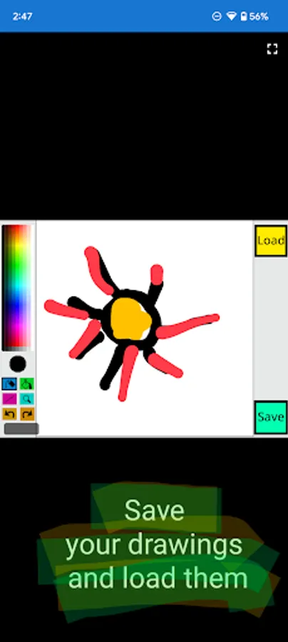 Press this yellow button on the right top corner. It will ask you to enter the digit you have entered while saving. If you enter the digit you will be able to see the drawing which was drawn.
