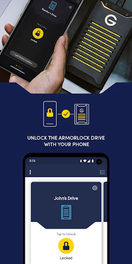 The ArmorLock™ app is the key to unlocking the G-DRIVE™ ArmorLock™ SSD. We built the ArmorLock™ Security Platform from the ground up with technology that’s amazingly simple to use and won’t slow you down. Use the app to unlock the drive with a tap – no password needed. The G-DRIVE ArmorLock SSD delivers pro-grade performance and ultra-rugged features that give you durability you can rely on. It’s next-generation security with new-generation simplicity.