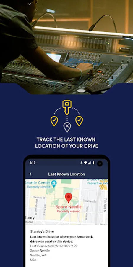 Want to see where your G-DRIVE ArmorLock SSD was last accessed? The app shows you on a map the location where the drive was last unlocked.