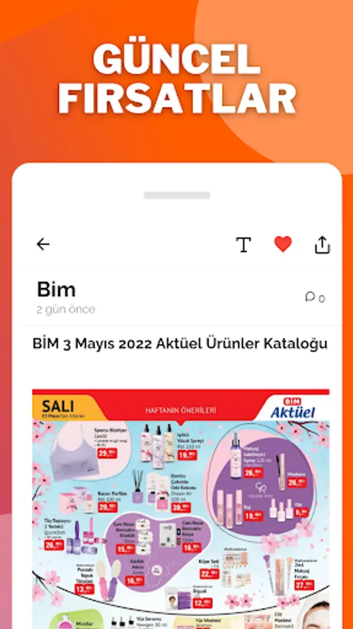 Instead of browsing the markets, you can access coupon codes, deals and products in the catalog for free in a single application. Thanks to the zoom feature, you can easily examine the products in the brochures, save the campaigns you like and view them later.