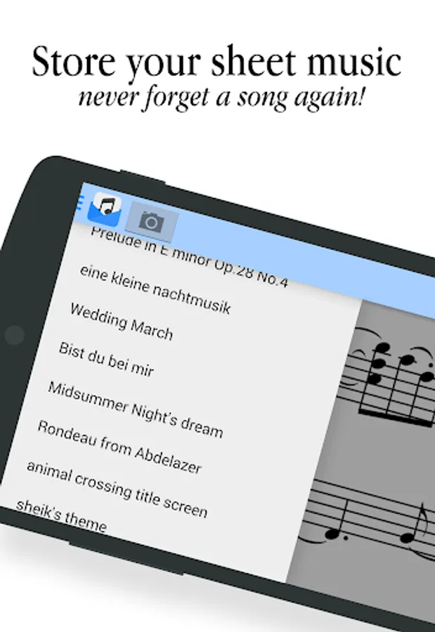Playing sheet music on our phones has always been a hassle, their screen sizes are just too small to fit an entire page of sheet music. Pocket Music solves this problem. Simply take a picture of a sheet of music and Pocket Music will not only enlarge the sheet to an easily readable size but will also move the sheet along as you play! Pocket Music also stores all of your sheets, so wherever you are you'll always have access to your music!