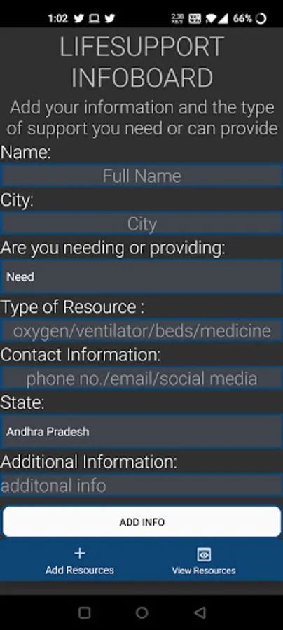 This is a notice board for information about people who need/provide essential resources. We have an intuitive UI that helps users easily add their requests for items that they need/provide along with their contact information. This information is then available for search using smart parameters that make the process comprehensive and fruitful.