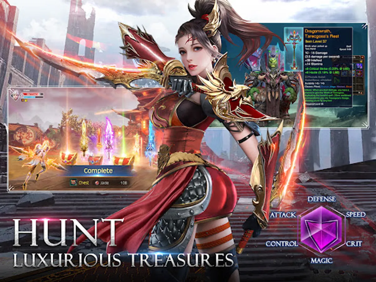 Challenge the monster bosses in the dungeons, you will be rewarded with rare items for your courage. You may collect legendary weapons from the battlegrounds!