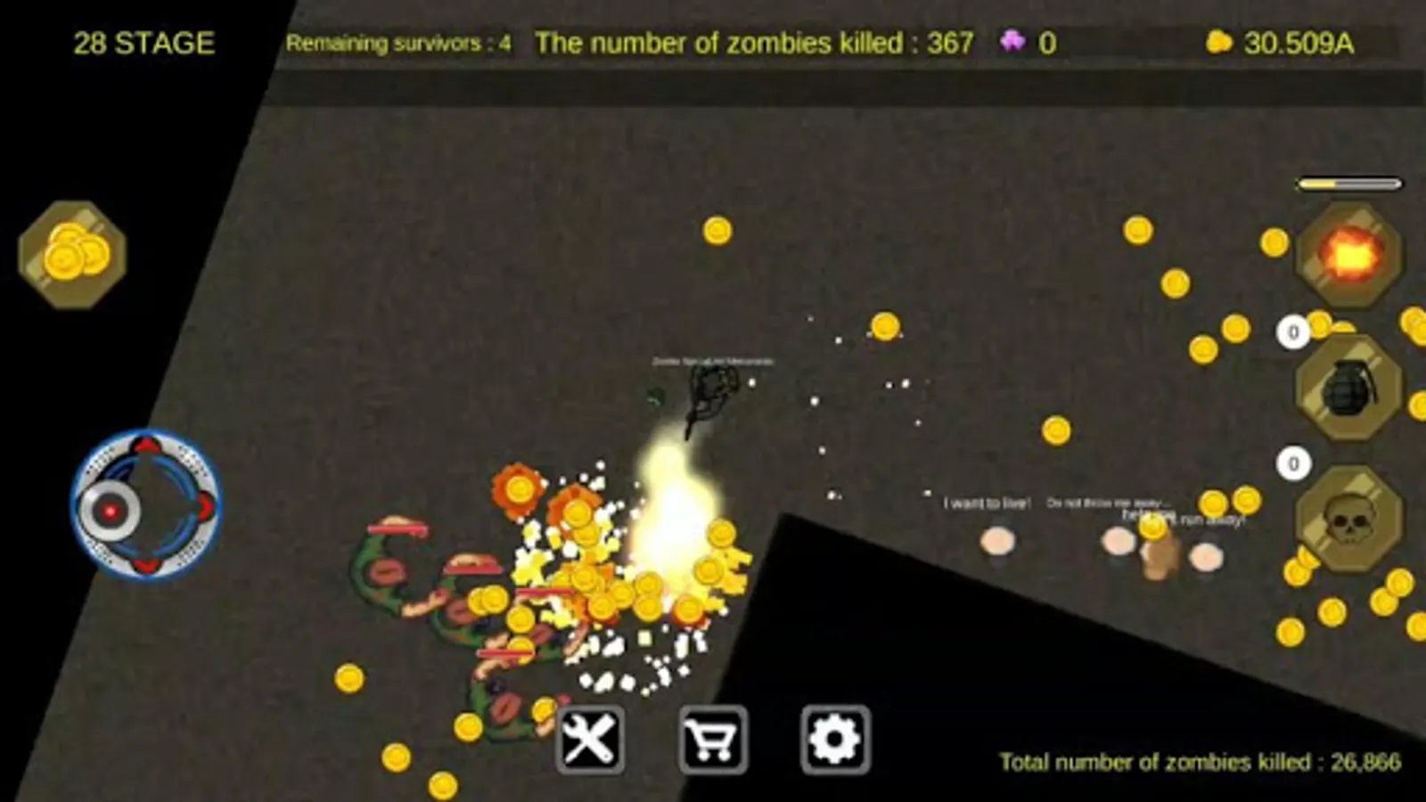 Limit time Within 60 seconds, push the red line as far up as possible and measure how far you are going, so you will be compensated for the amount of gold in proportion to the distance. ^^ A new mode of zombie warriors who are burdened with the protection of survivors! Time Attack - Play the far-away mode! ^^
