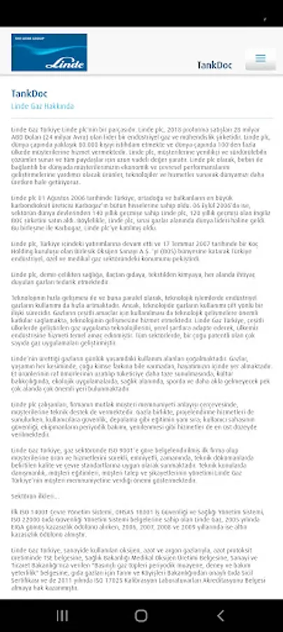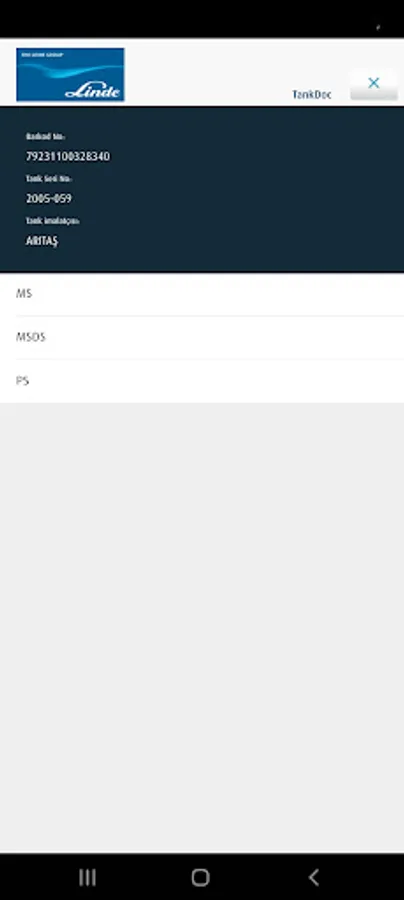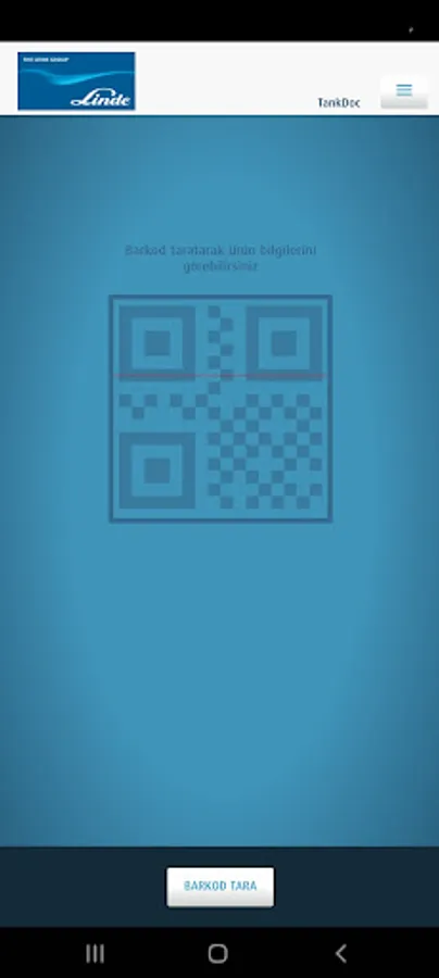 With the "TANKDOC" mobile application, you can access the tank and product information installed by Linde Gaz Turkey, access the documents, and select the desired document from the menu by scanning the QR code on the tank.