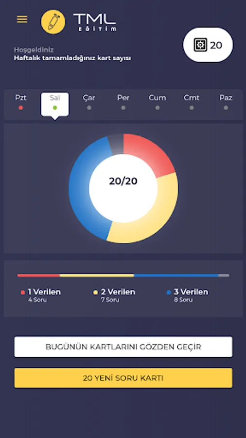 With the TML application, you can choose your daily task only as the subject of the course you are studying, or as a few courses, or to cover all courses. The app only brings the contents of the courses / topics you want to repeat to the home page.