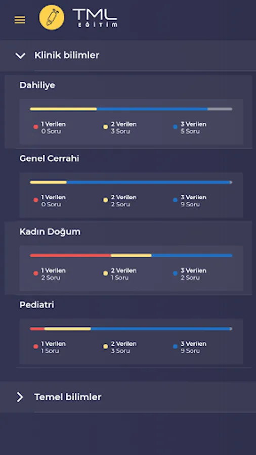 One of the main problems in TUS and DUS is not knowing which course you have lost. TML implementation is the solution to this problem. As you use the application, you will be able to graphically see how much you are missing from which course and compare course performances. So instead of constantly repeating all the lessons from the beginning, you will be able to devote time to the missing courses and the cards you are missing from these courses.