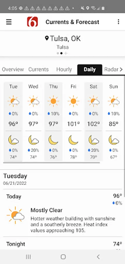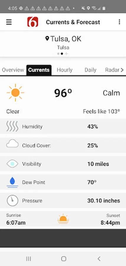 Take the News On 6 Weather team wherever you go with the News On 6 Weather app. Get the latest forecasts, radars, alerts, videos, and blogs from the Oklahoma weather experts Travis Meyer and the WARN Team.