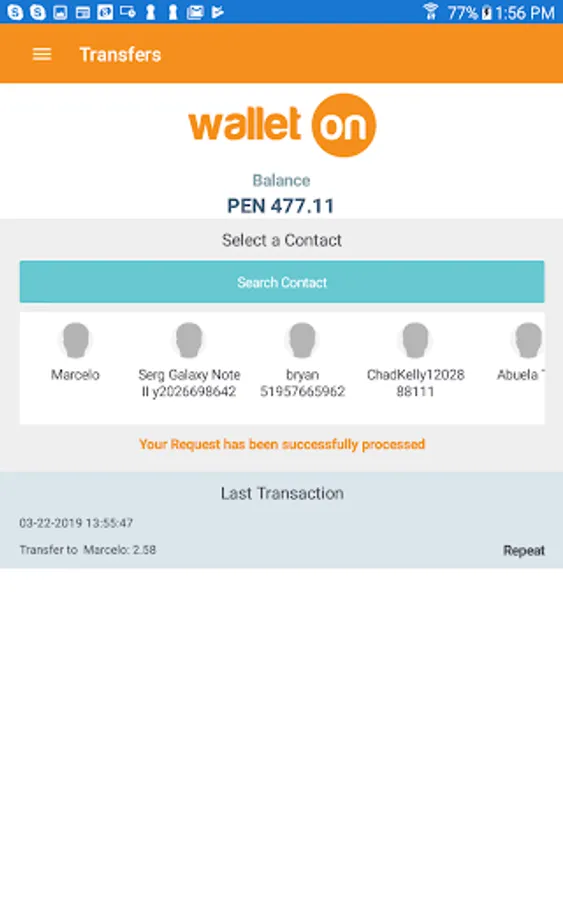WalletOn is the application you need to easily send money between your family and friends. Download it and increase your financial services by sending national and international transfers to any bank in the participating countries. WalletOn is a mobile wallet that will help you improve your finances in your community.
