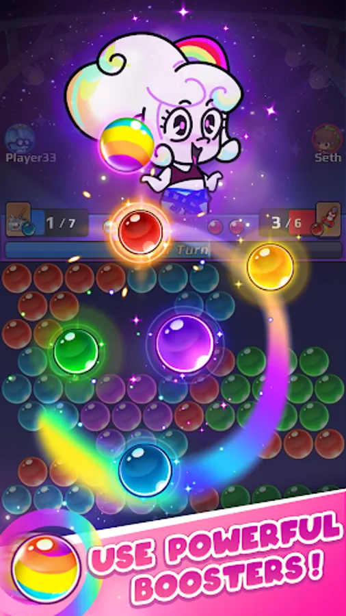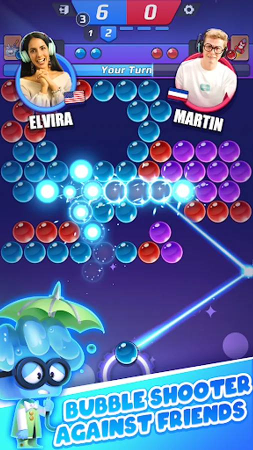 Play LIVE against opponents from all over the world online players. Slide to aim, and release to shoot your bubbles. The game is easy to begin, and after that you will encounter more fun and increasingly challenging opponents and game modes.