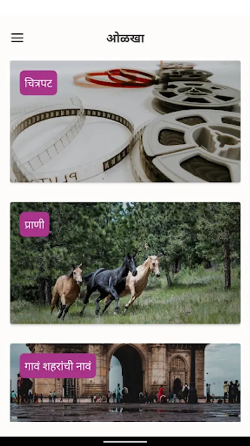 A fun puzzle app. It contains questions and puzzles on various topics. Identify this puzzle based on Marathi, Hindi, English movies, songs, games, flowers, fruits, countries, cities. These puzzles that stimulate the intellect along with the fun of playing.