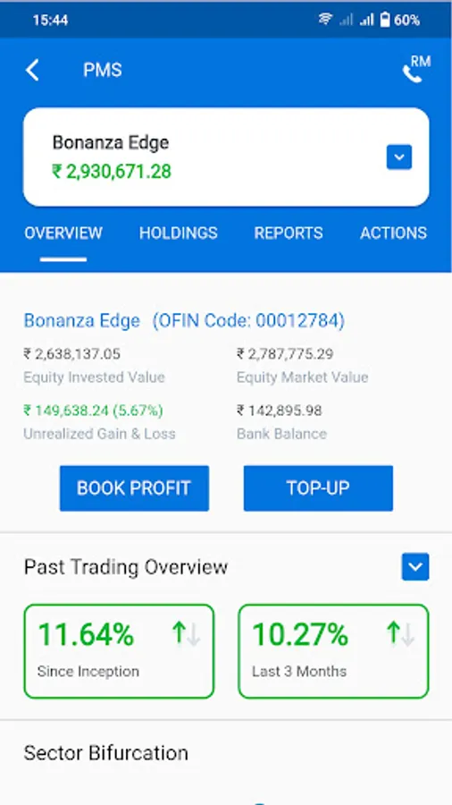 - Dashboard: A summary of your equity investments. It displays the current value, loss, gain, and investment value. You can also book your profit & raise top up requests. Watch your money grow in a neat and clean dashboard.