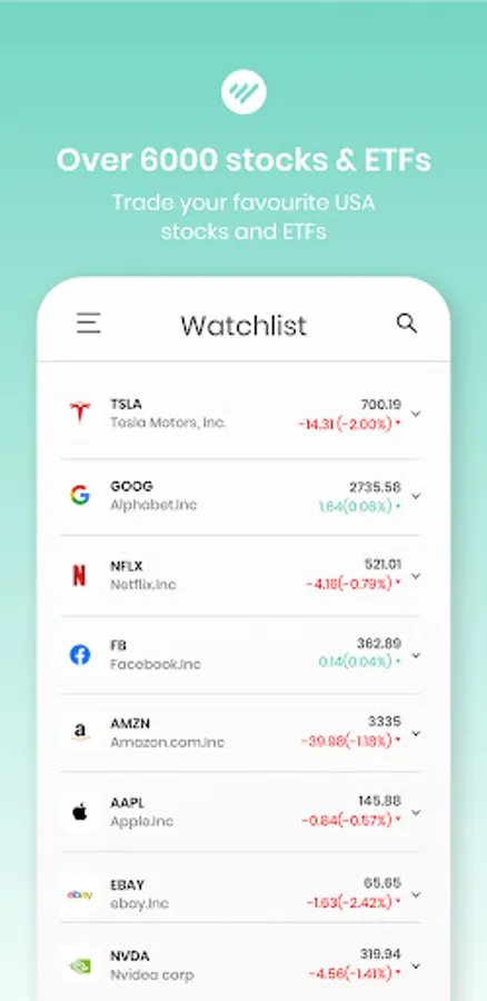 Buy and sell 6000+ stocks in just a few taps with Wealthface Trade. There are no account minimums. Just a simple and secure stock trading platform that allows you to buy stocks like Netflix (NFLX), Facebook (FB), Amazon (AMZN), Google (GOOG), Apple (APPL), Zoom (ZM) and many more.
