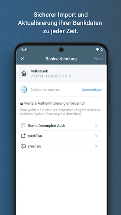 You get a complete overview at the push of a button - including all bank details, custody accounts and other systems.