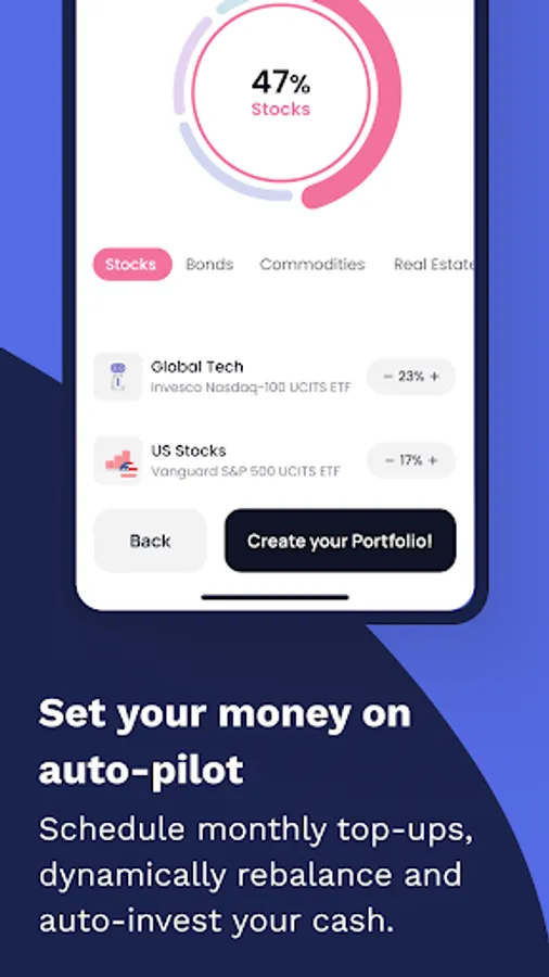 - Schedule monthly top-ups, dynamically rebalance and auto-invest your spare cash.