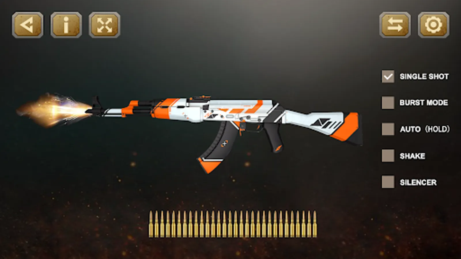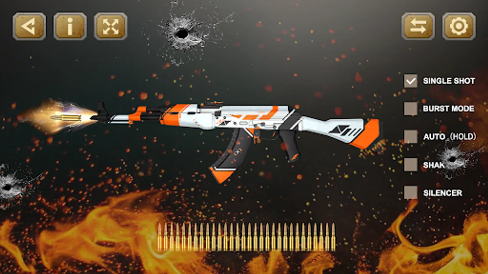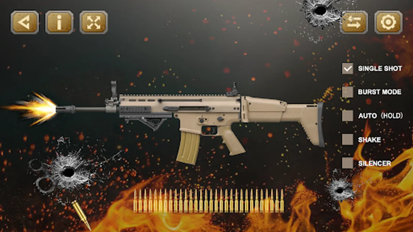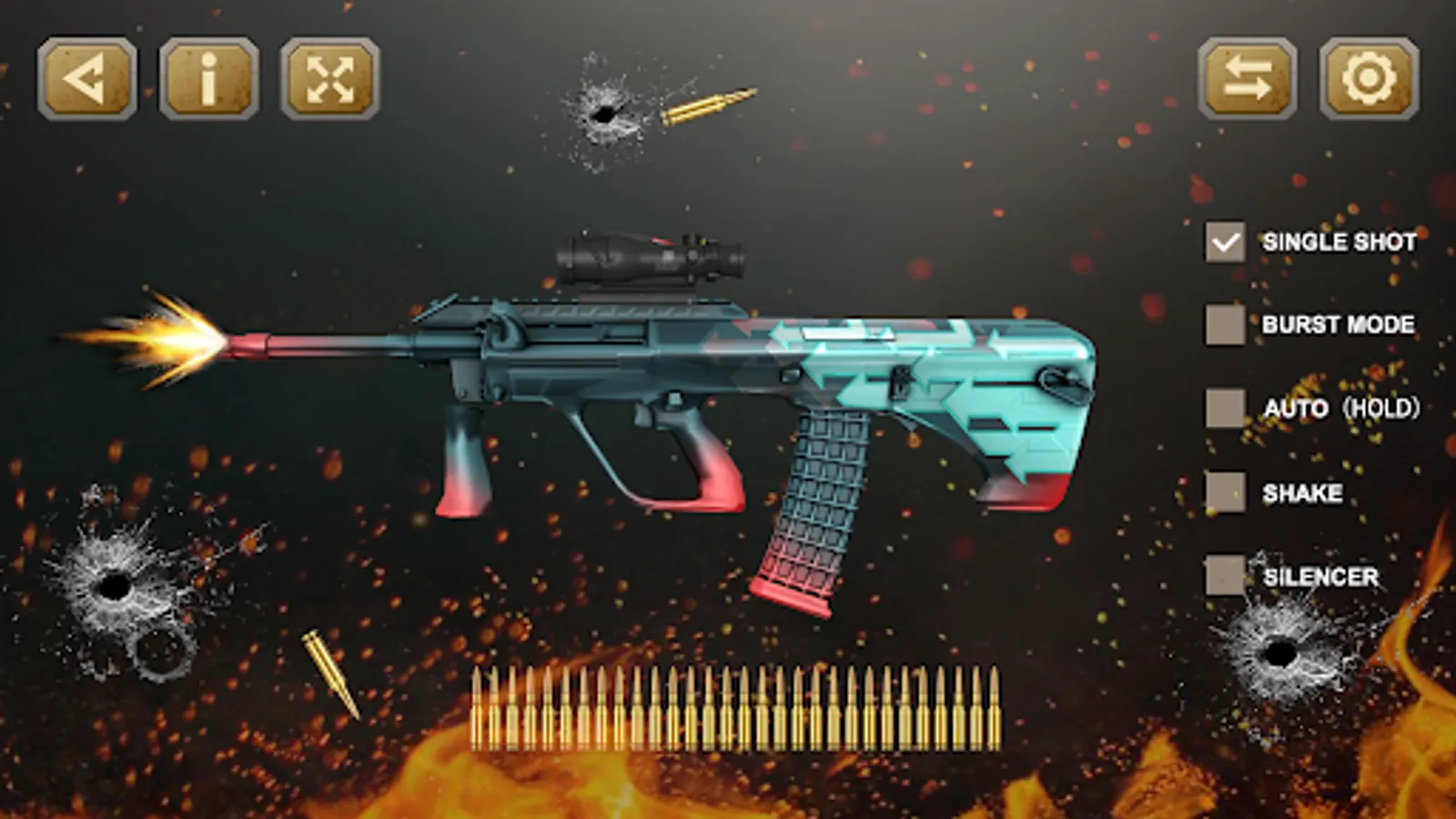 - Choose the gun simulator mode: single shot, burst mode, auto fire and shake