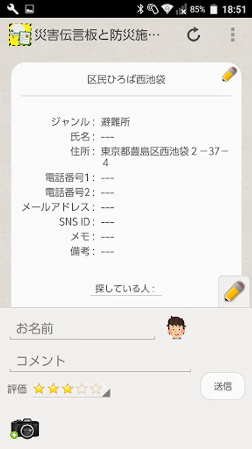 Please post a shelter information in advance as a disaster prevention consciousness, decide a place to wait for family members, etc. Please use it freely.