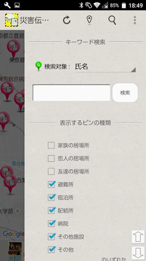 Information on evacuation centers, temporary residential areas, distribution sites, etc. can be confirmed.