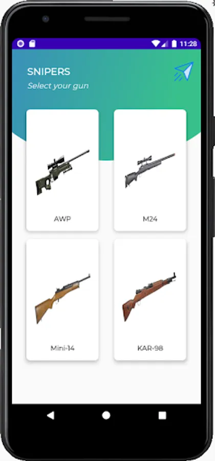 Choose your weapon category (Pistols, Shotguns, Rifles, Snipers ...)