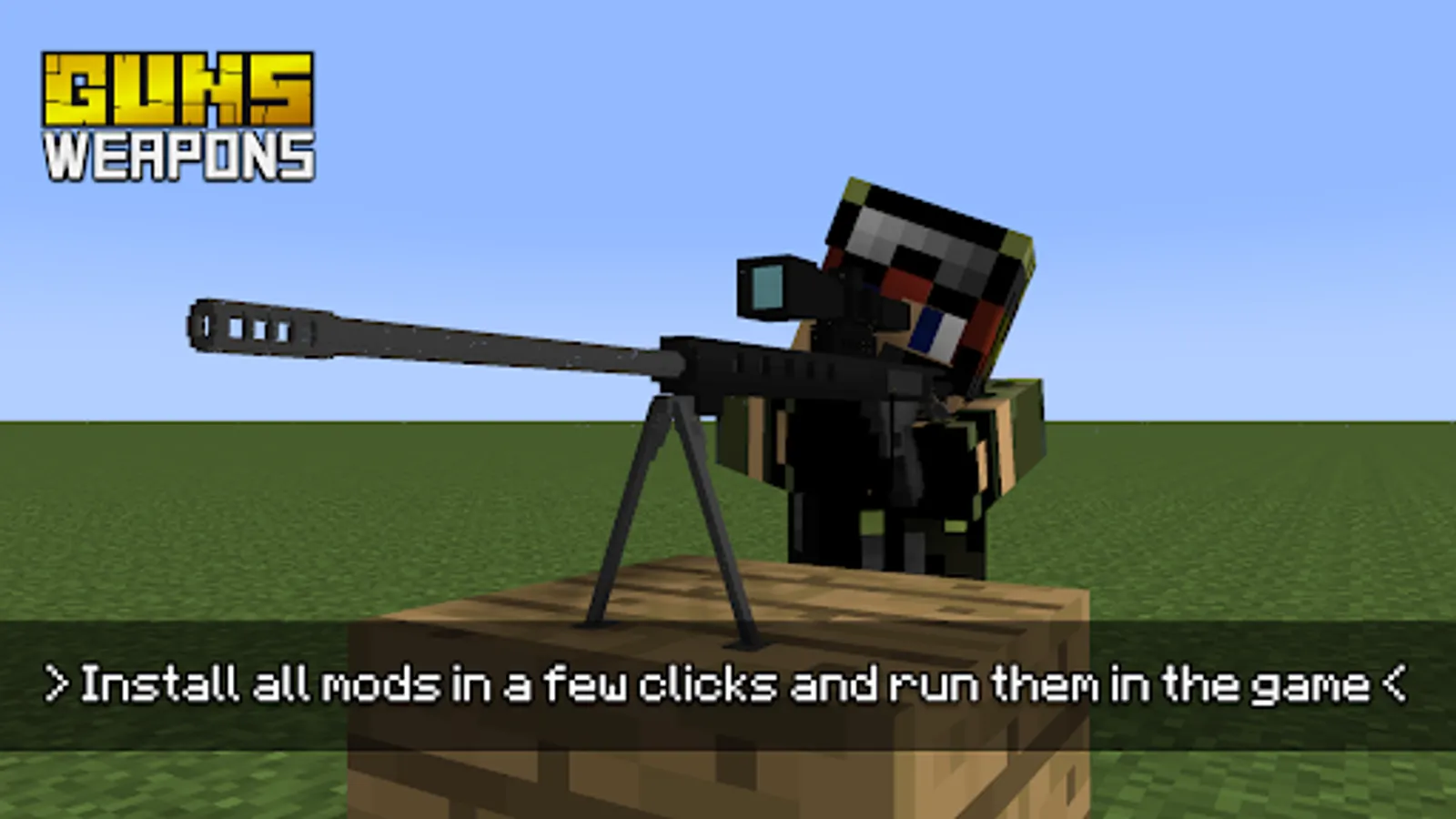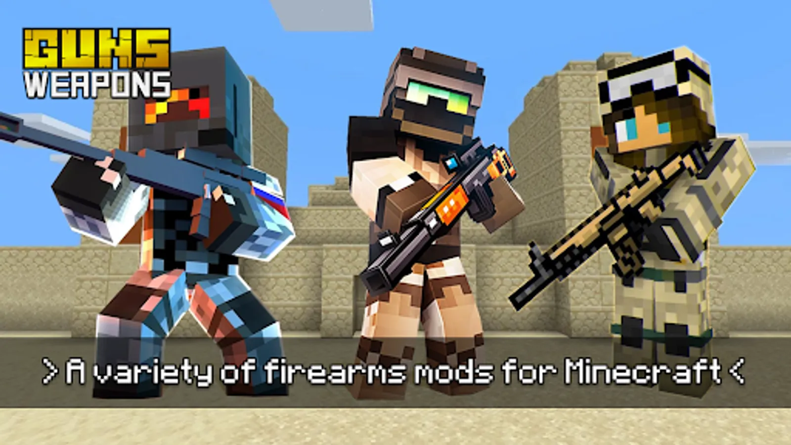 This app will allow you to get various firearms, steel arms and a lot of guns mods for Minecraft PE and Bedrock Edition and replenish your combat stock in the game. We provide the top selection of Minecraft gun mods and weapons for MCPE! Now you will be armed to the teeth and will be able to overcome all the mobs and enemies in PVP battles!