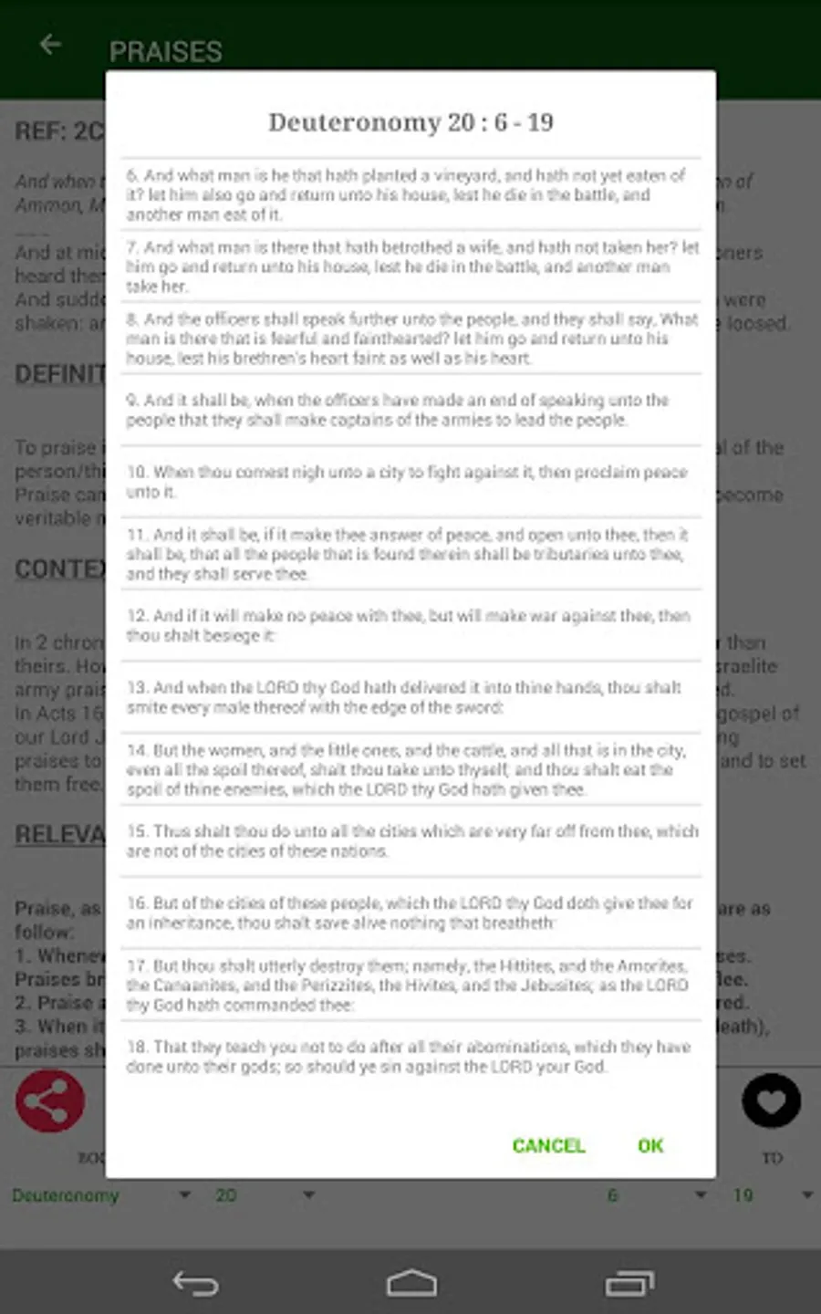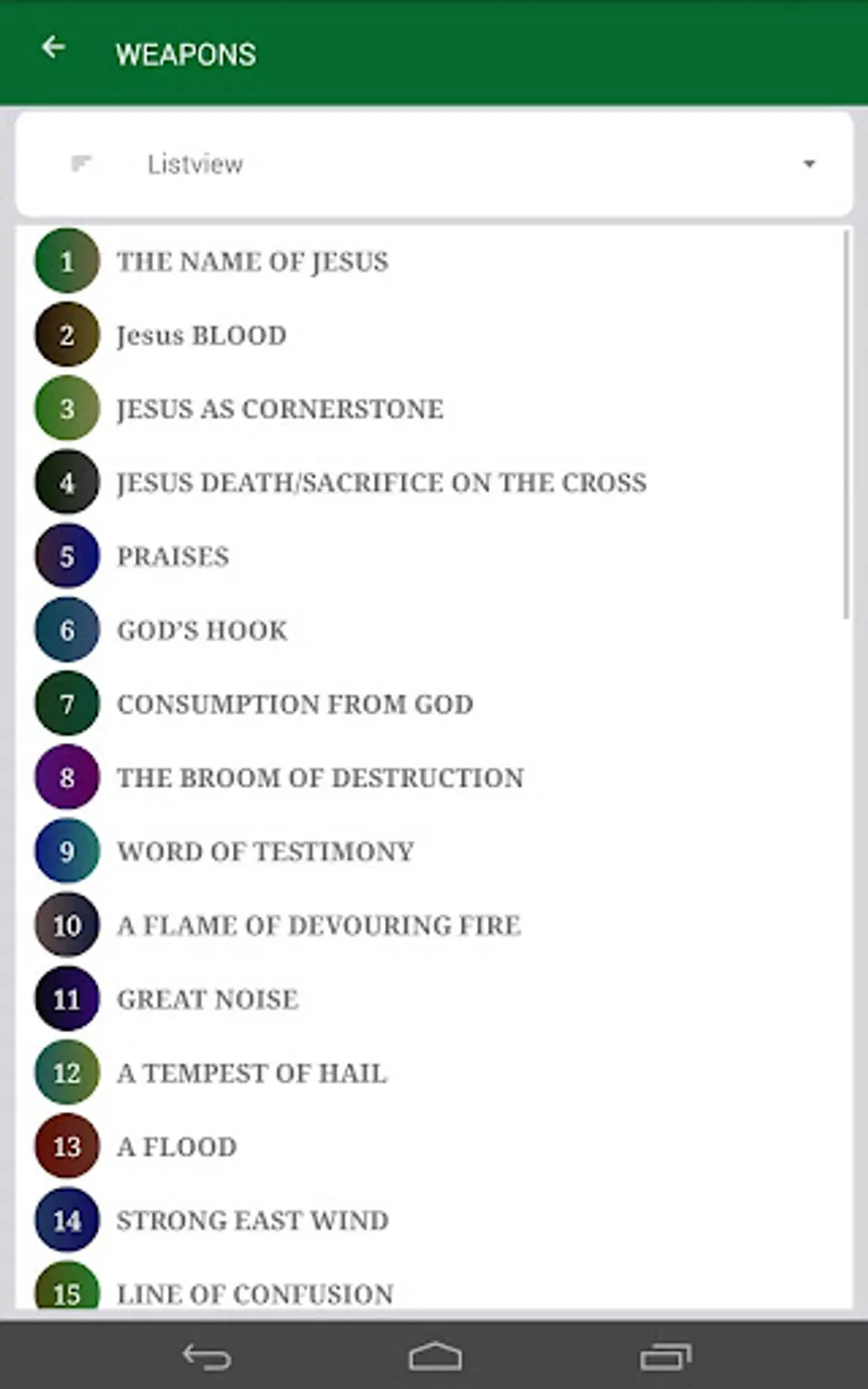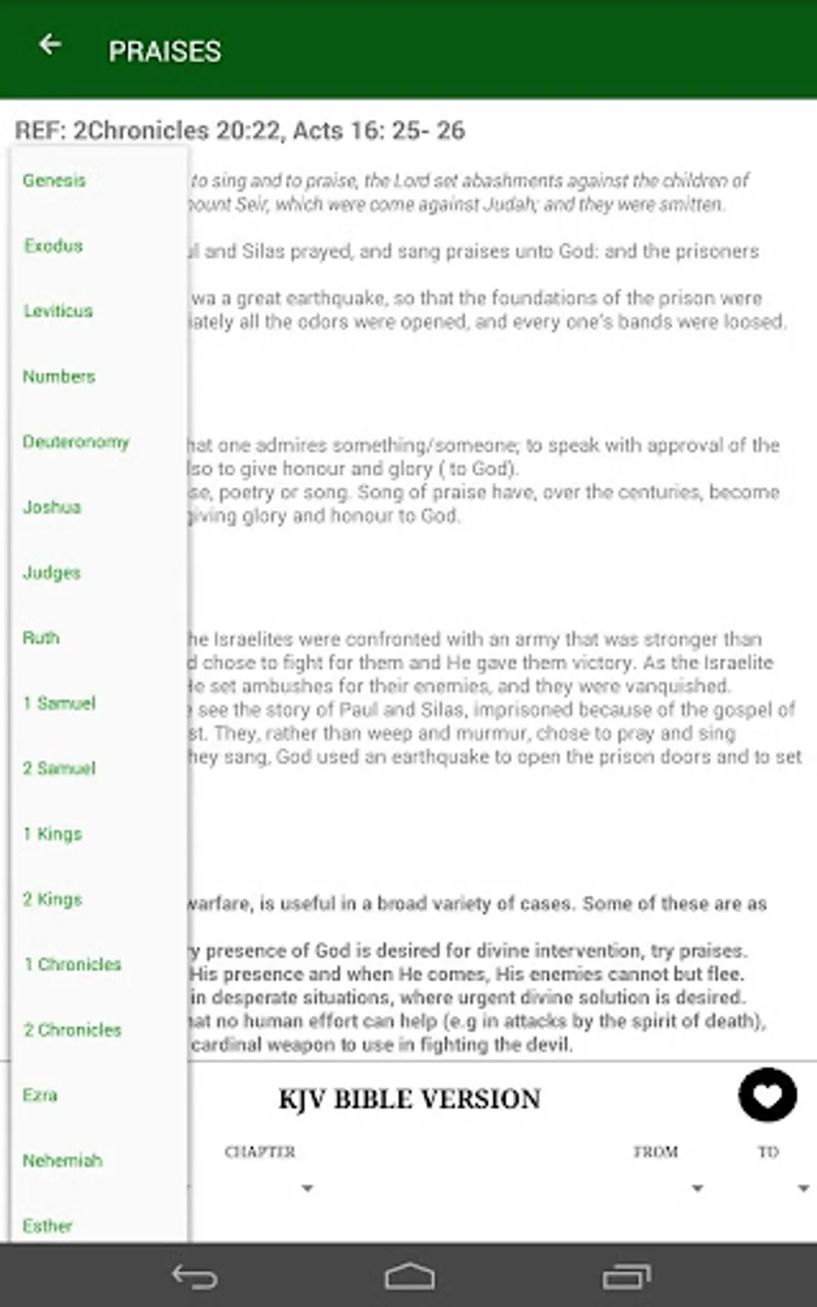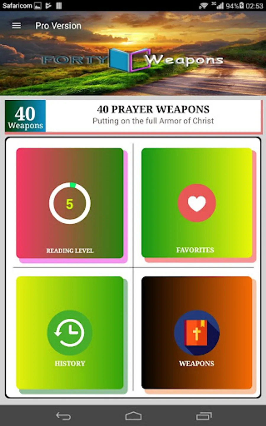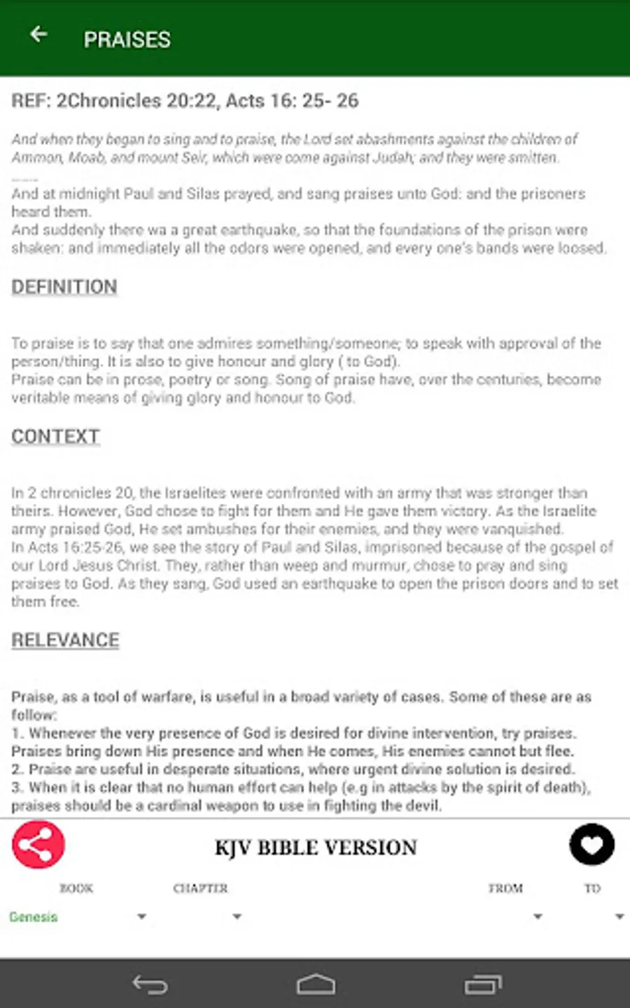 Strengthen your spiritual living and your spiritual defense mechanisms as this book will teach you. With 40 powerful weapons to keep you safe from the devil and his plans against your life and destiny. This book is well equipped with internal integrated Bible (New and Old Testament). The app will track for you how well you reading the book and rate a percentage for you. The integrated offline bible will ease access of bible verses on the go. This version contains no ads hence you will have no interruptions from annoying ads popping up every now and then. This app will also enable you save weapons for future easy reference. This is made possible by the favorites feature. The app will also keep an history for you. Any features you might need us to add feel free to let us know.