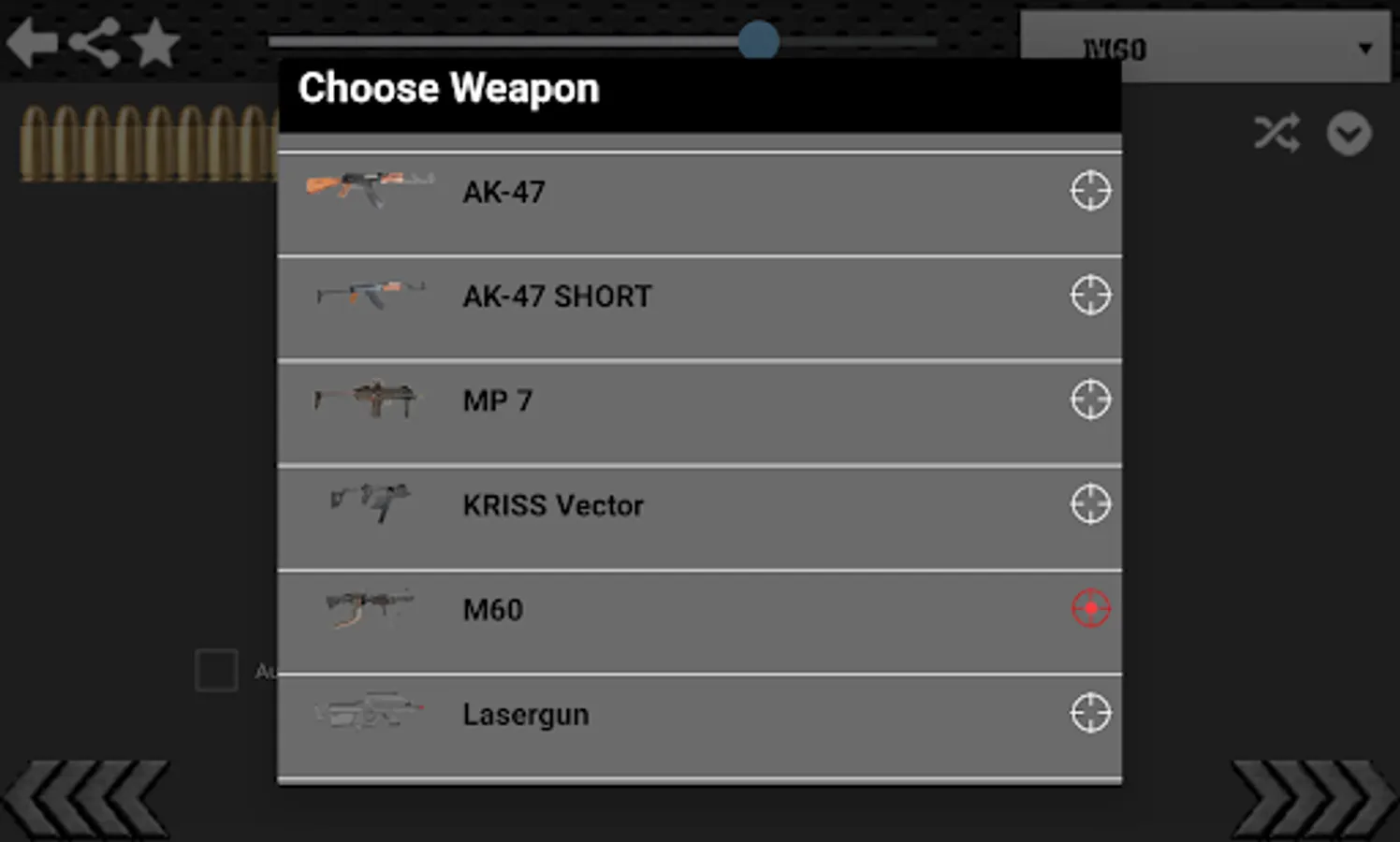 - Burst Mode: when the finger touch the screen, gun start continuous shooting for five times