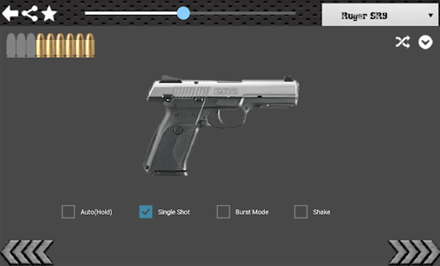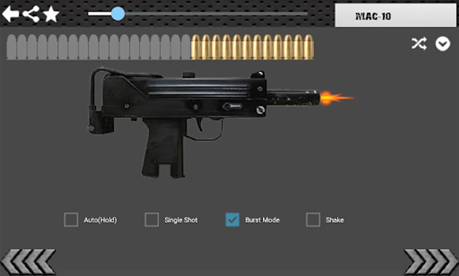 - Shake Mode: gun shot when you shake your phone