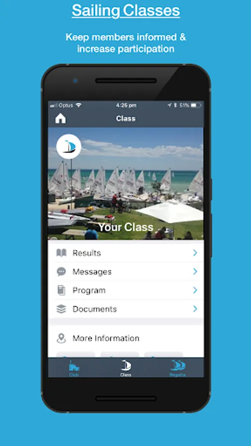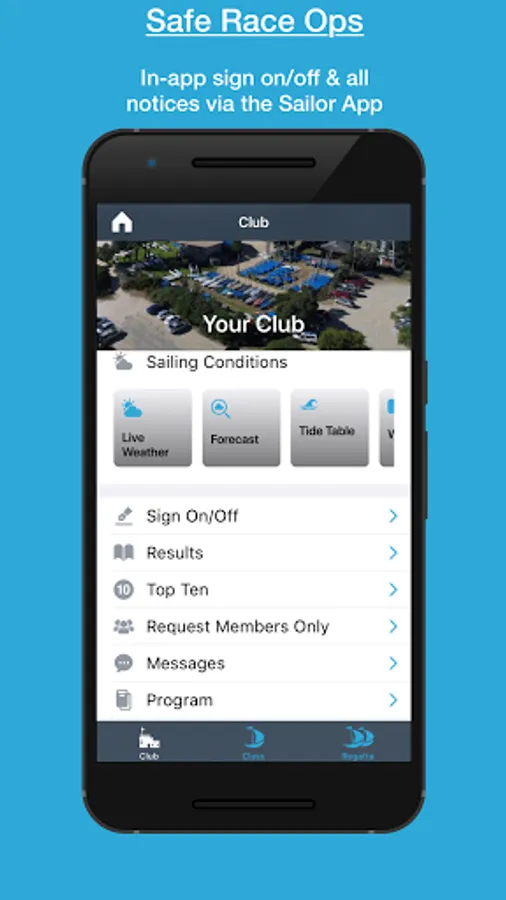 Clubs can keep sailors updated with real-time racing information and reminders for social events via the message function.