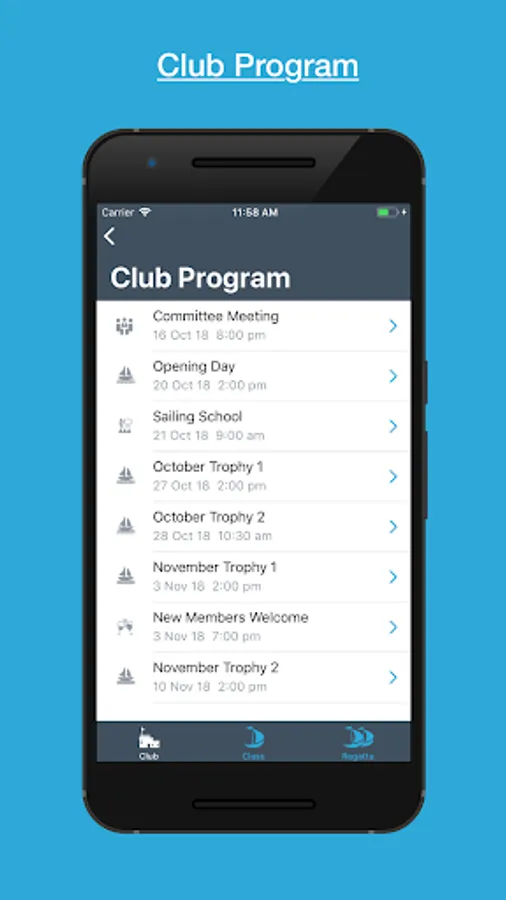 Clubs subscribed to MySailingClub.com.au can provide their members and visitors with access to their program of events and booking details directly on the member's phone.