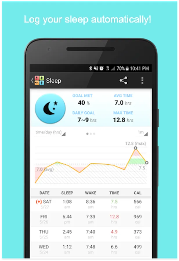 ✔ Sleep Tracker automatically detects how long you sleep last night with "Good Morning" greeting