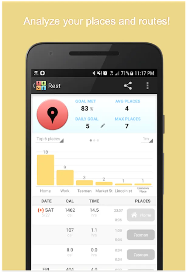 • IN-DEPTH ANALYTICS (top 5 place/route, sleep, walk pattern with daily/weekly trend)