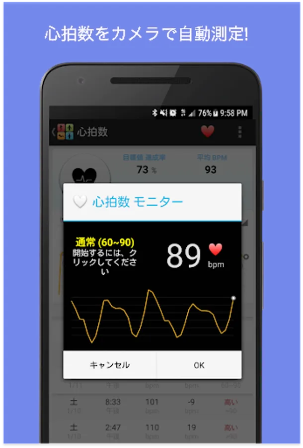 • for heart rate measurement, (until the measurement screen turns red) the tip of the finger, please put lightly on the back camera lens wear. If there is no flash in the mobile phone, please measured in a bright location.