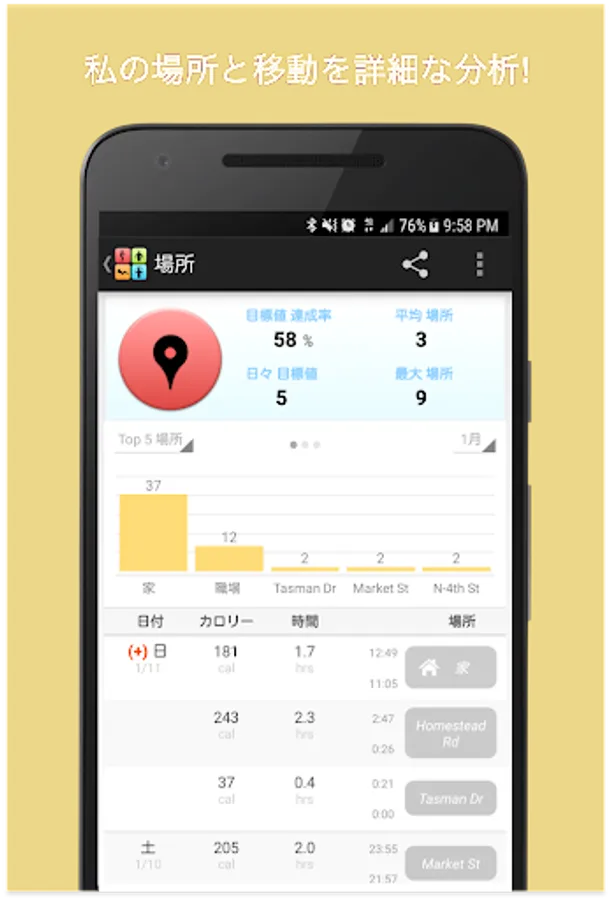 • detailed analysis of the data Top5 location / path, sleep / walking pattern analysis, Daily / Weekly Trend analysis