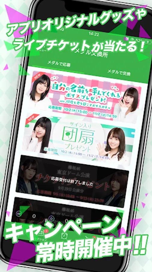⊿ A medal exchange where you can win tickets and app-only goods!
