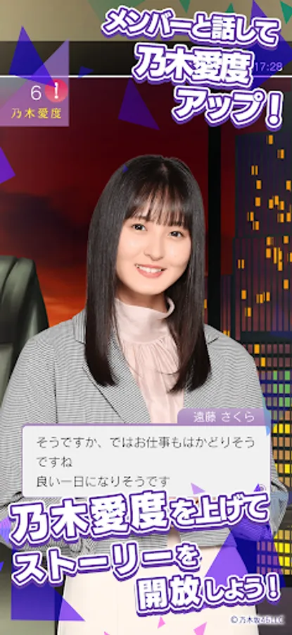 The members will become concierges and will inform you about the schedule of "Nogizaka46" and appearance information of "Oshimen". If you start the app, members will always be your own concierge!