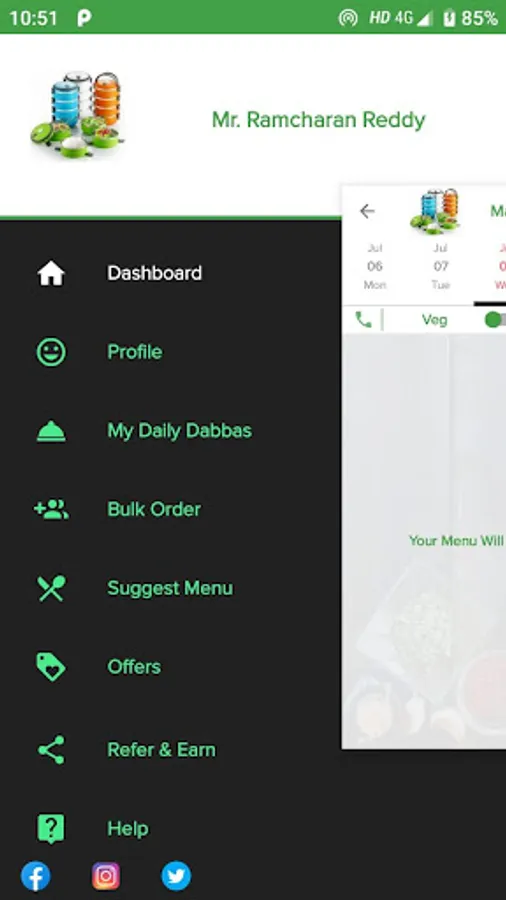 Home made Meals and Tiffin service with both veg and non-veg food items in the City delivers delicious tiffins and lunch or meals with free home delivery.