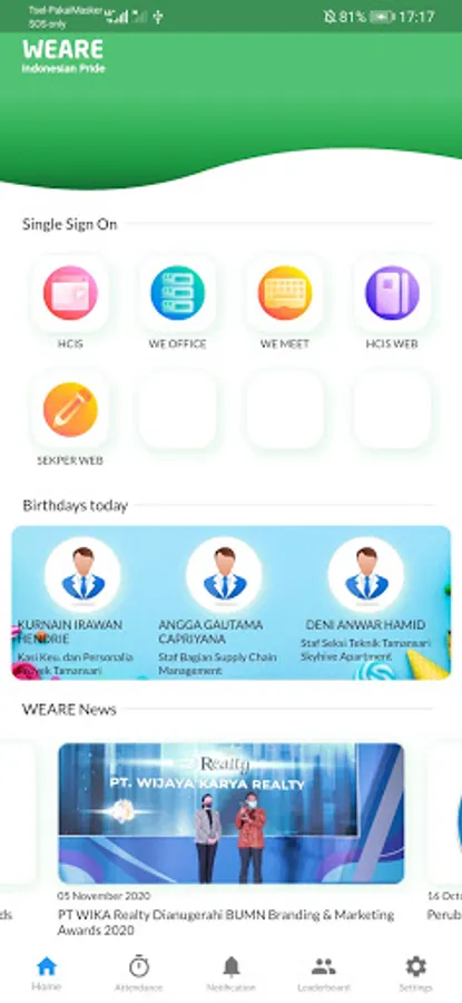 Weare Mobile App adalah aplikasi mobile milik wika realty yang mempermudah pegawai dalam melakukan pekerjaan.