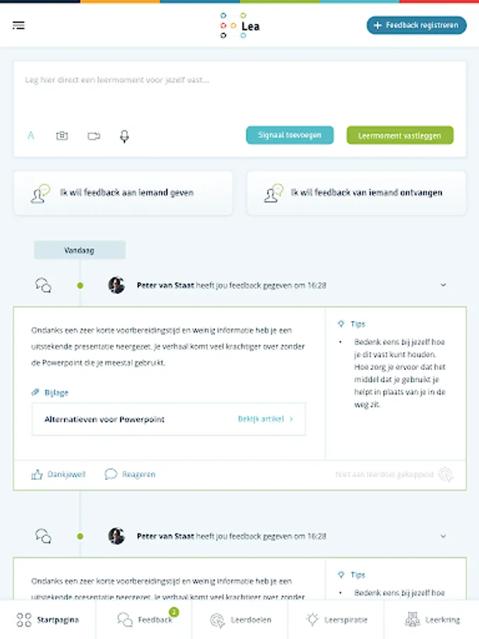 Leah use your power to achieve your development goals, because you learn most of what you do. Leah will help you to constantly improve. Together with colleagues. As you continue to grow.