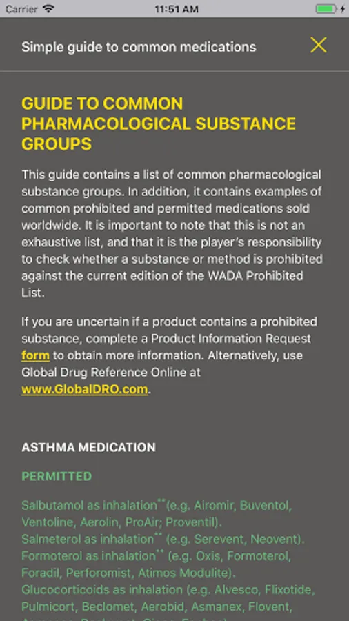 • All TUE information, including online TUE Portal and in-app submission of Product Information Requests to IDTM