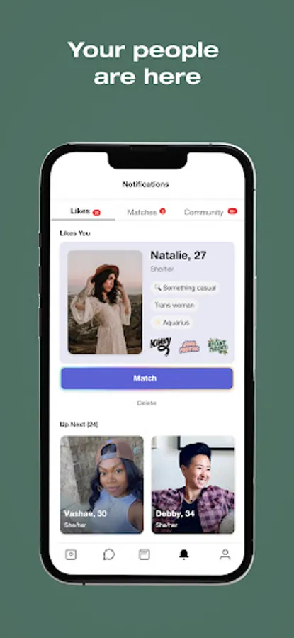 Contrary to what you might think, HER is a safe and inclusive place to date and chat for all queer people. While it started as a lesbian dating app, it has evolved into a platform for LGBTQIA+ people. Cis women, trans women, trans men, non-binary people, and gender non-conforming people are all welcome. Share your story, discover local events, join the community and live your best life!