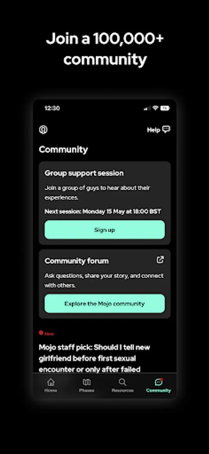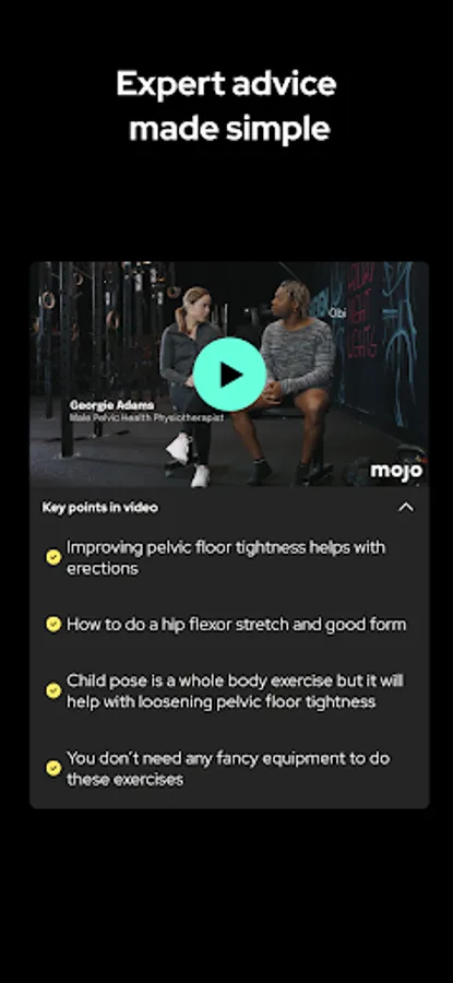 Mojo is a sexual wellbeing app that helps men overcome psychological sexual issues.