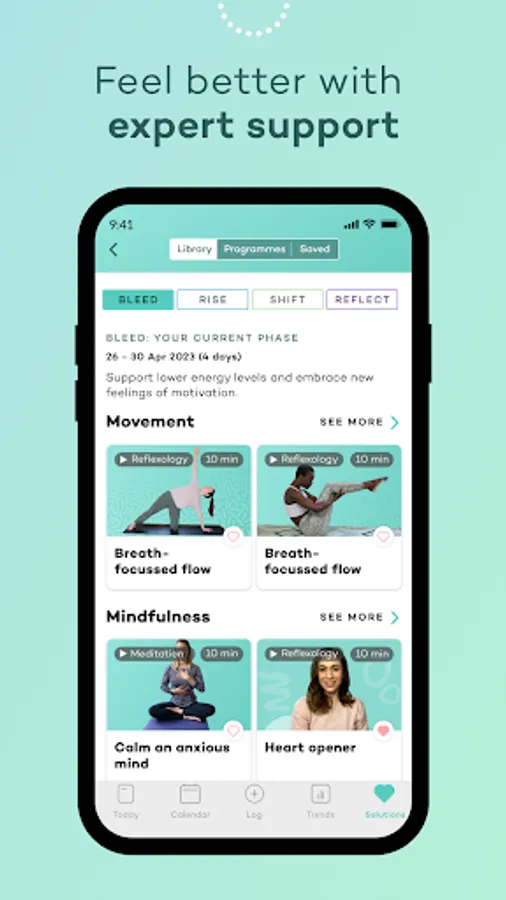 Support your daily wellbeing with fitness, mindfulness and nutrition content, tailored to your hormones. Get recommendations on the foods to eat, the workouts to do and the techniques to try to optimize your hormonal health. With our series of programs, you can access content aimed at supporting your most common moods and symptoms. Look forward to a combination of education, nutritional advice, recipes, movement and mindfulness practices focused on creating healthy routines and habits in relation to stress, fatigue, bloating and more.