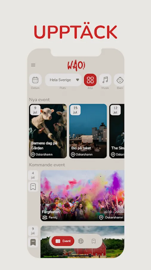 WOW! is not just an app – it's a portal to your community. We want to make it easy for you to experience all the amazing things your city has to offer, directly on your mobile. With us you can quickly and easily find interesting and fun events that match your interests.