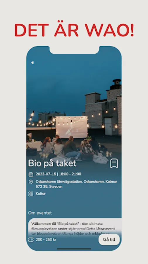 Explore your community in a whole new way with WAO! the app. With us you can discover a world of events, from concerts and sporting events to festivals, lectures and much more.