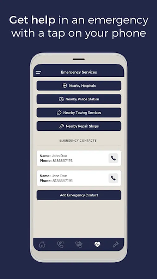 • Emergency Services that enable you to locate nearest hospitals, police station, tow-trucks, auto-repairs and more during the time of an emergency.
