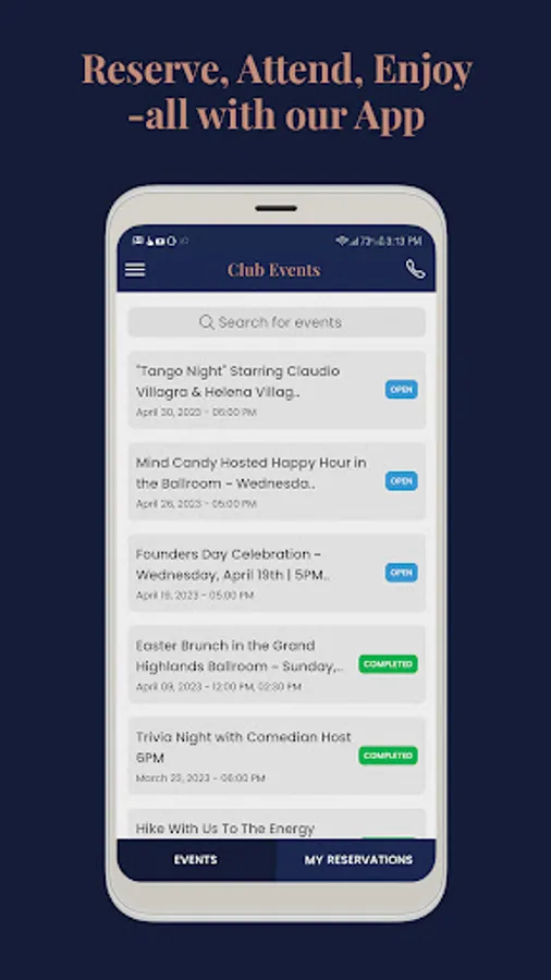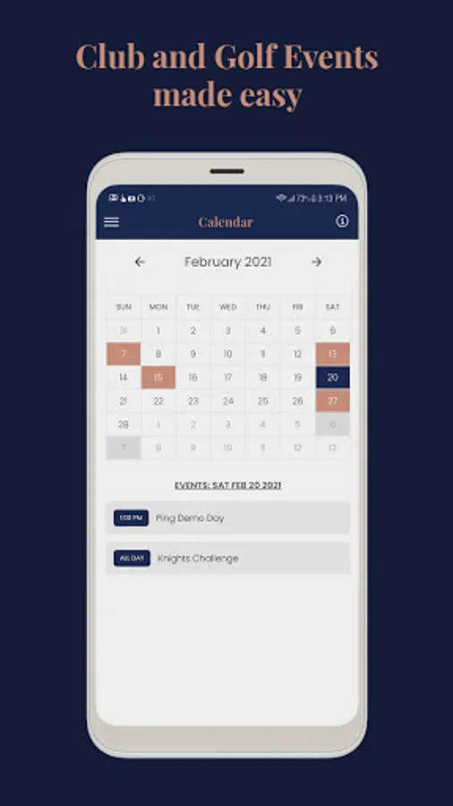 • Get access to all current and upcoming events at the club through our member Calendar.
